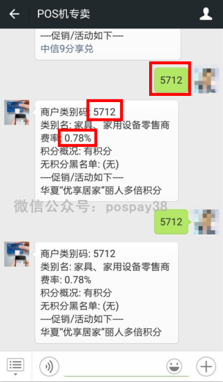 7、在公众号对话栏输入MCC码,就可以查询费率和有没有积分.